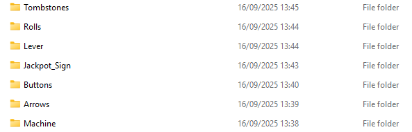 Core / Rolls / Lever / Tombs / Jackpot sign / Buttons / Arrows