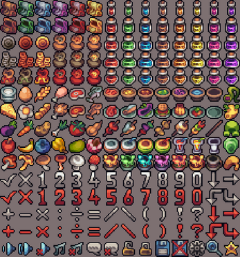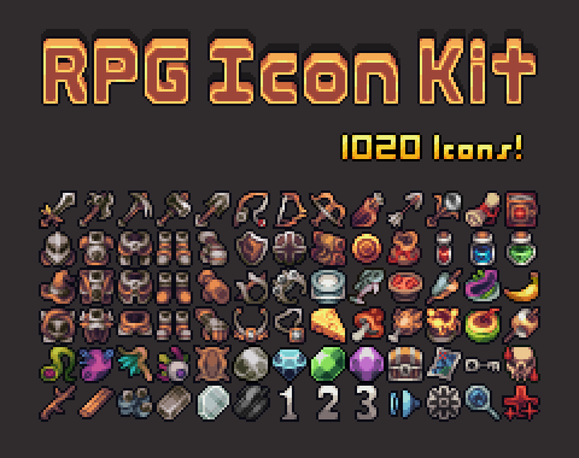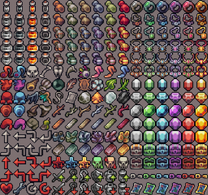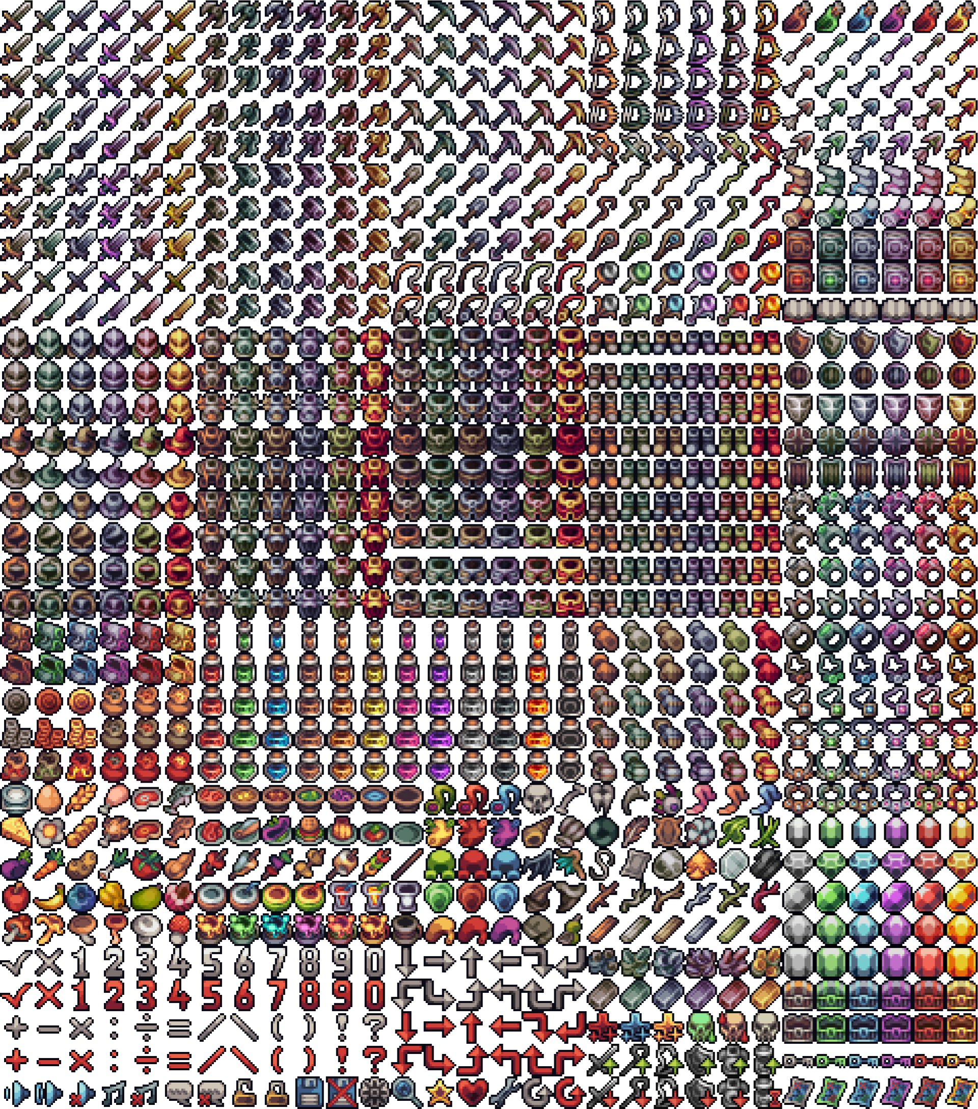 By downloading this pack, you will receive a ZIP file containing both the raw sprite sheet and detailed files containing pre-cut and unnamed icons as PNGs.