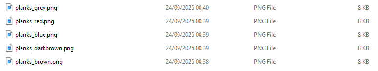 Wood (5) : blue, brown, dark brown, grey, red tints